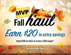 - Shop six times between Oct. 15 and Nov. 26 with a personal MVP card.